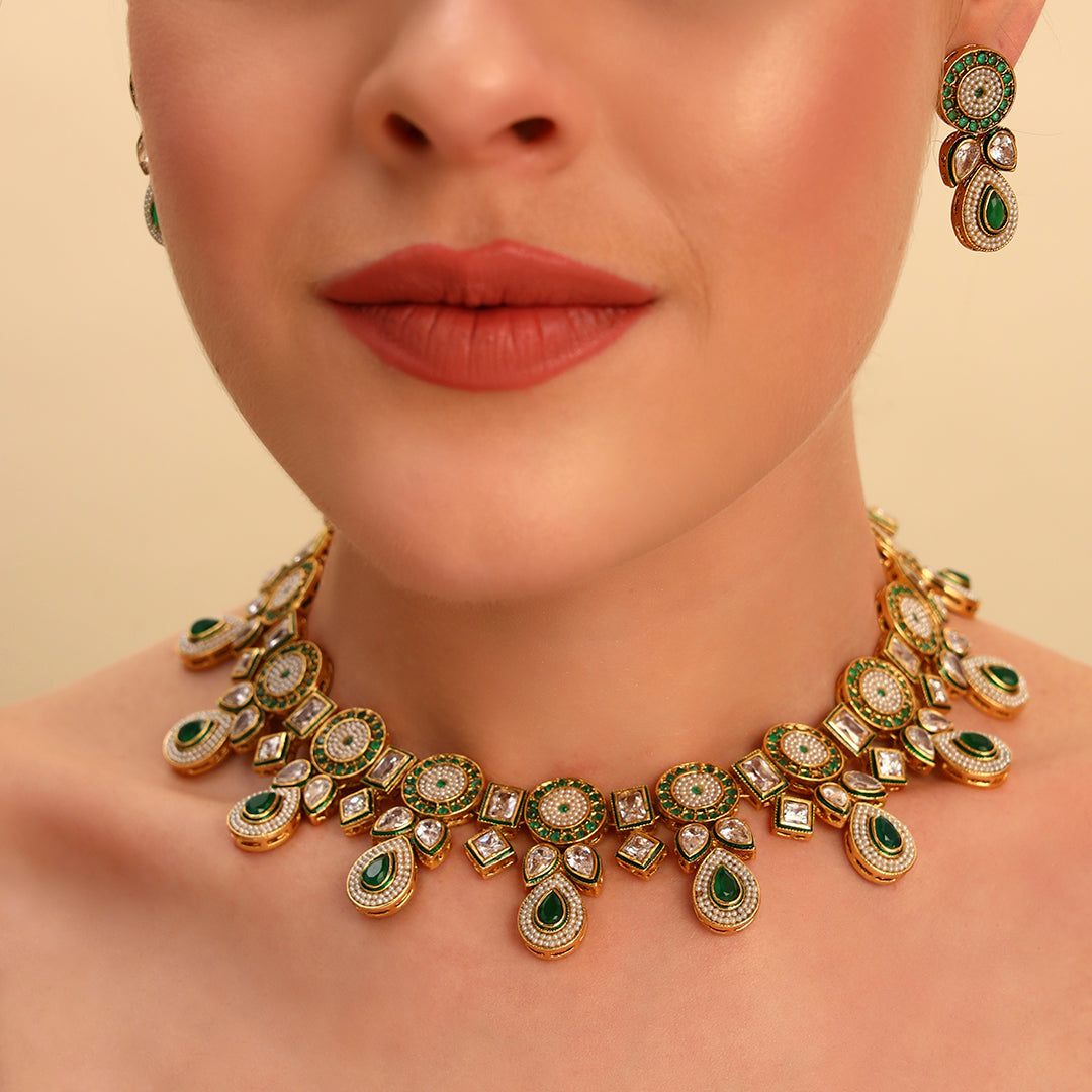 Green Kundan Antique Necklace Set