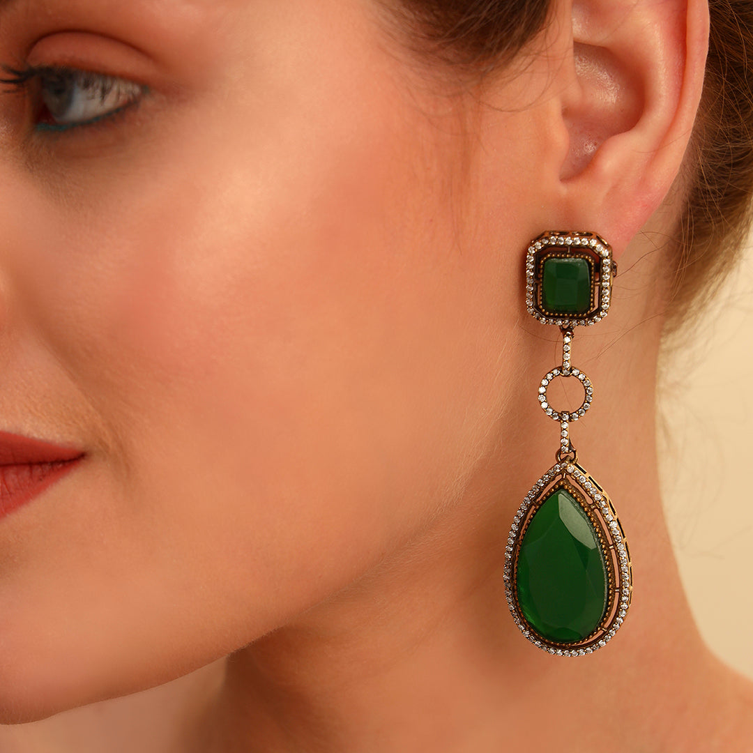 Green Monalisa Stone Drop Earrings