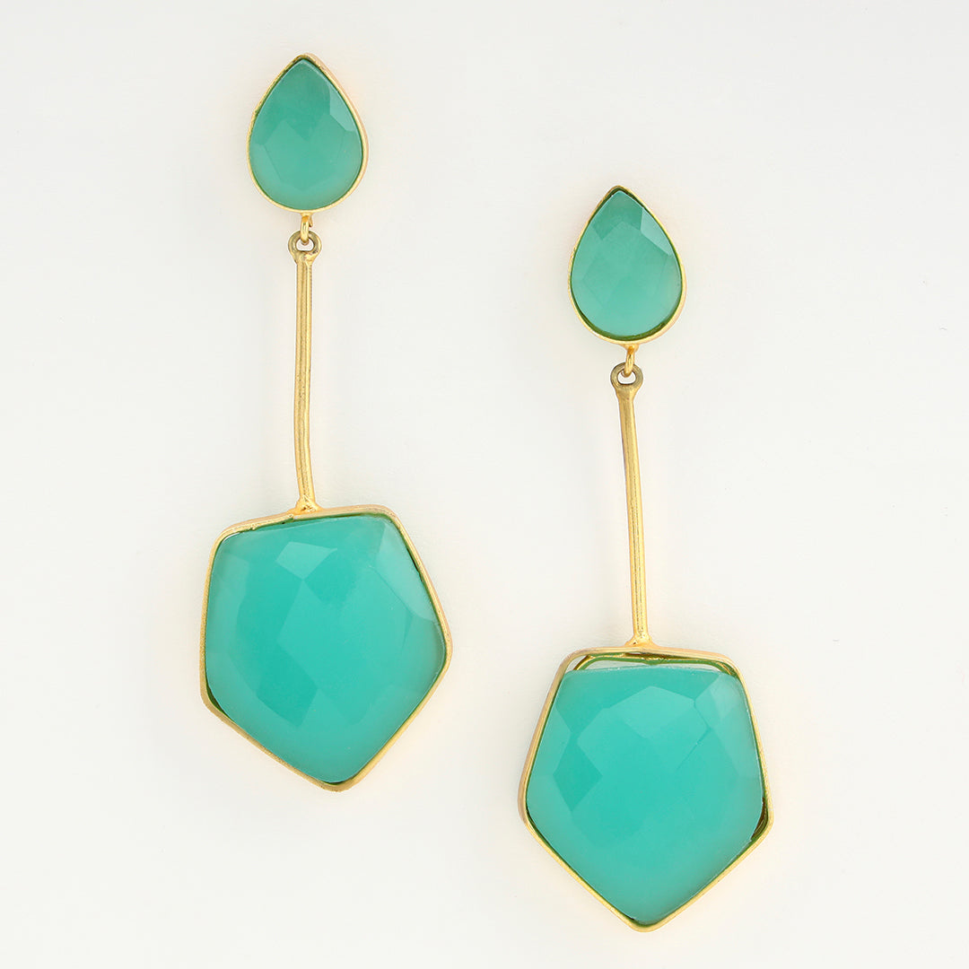 Sleek and minimal, these mint Monalisa stone earrings feature a modern elongated design with a soft gold finish—perfect for elevating everyday and evening looks.